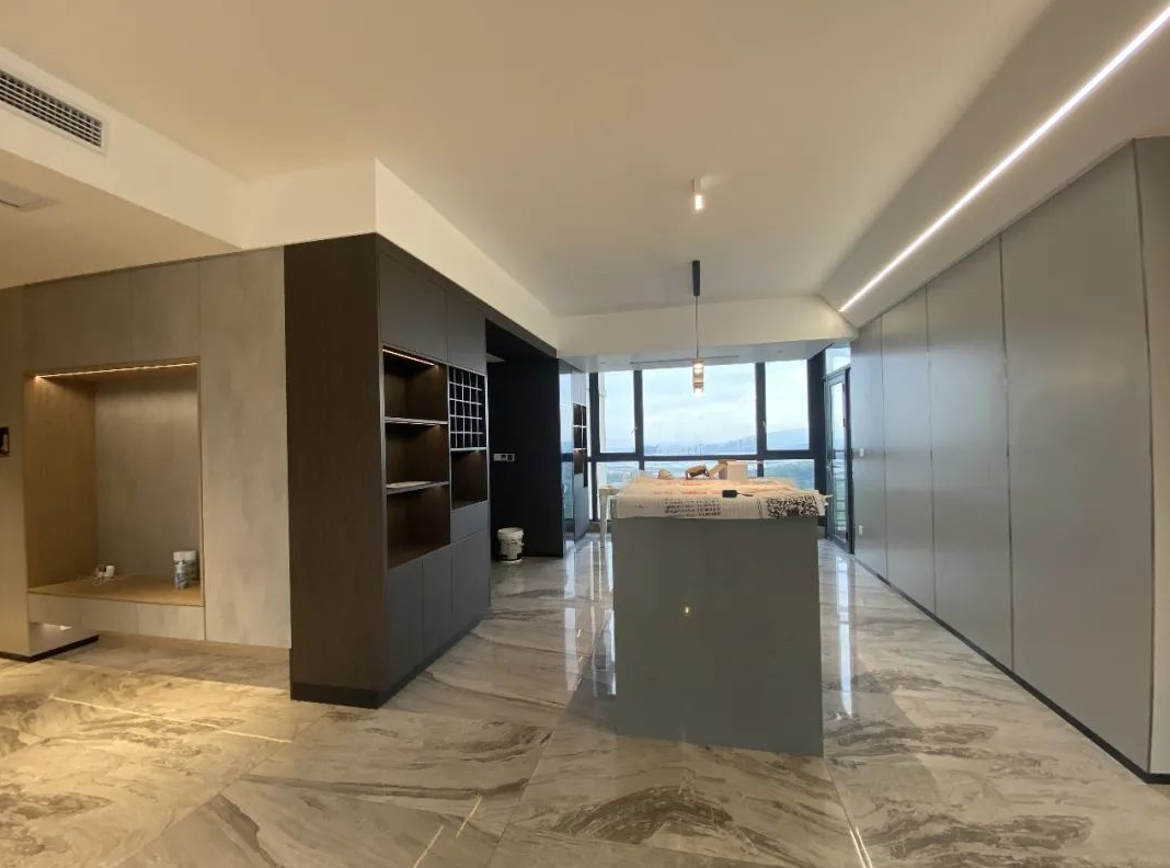 指紋解鎖后推開家門,一旦感應到主人回家,玄關到客廳的燈光就會緩緩亮起,窗簾拉開,空調已經調至適宜溫度,不再需要開燈、拉窗簾的繁瑣操作。客廳的燈光是由暗漸亮地亮起,極具層次感,為空間照明的同時點亮了家的溫度.....
